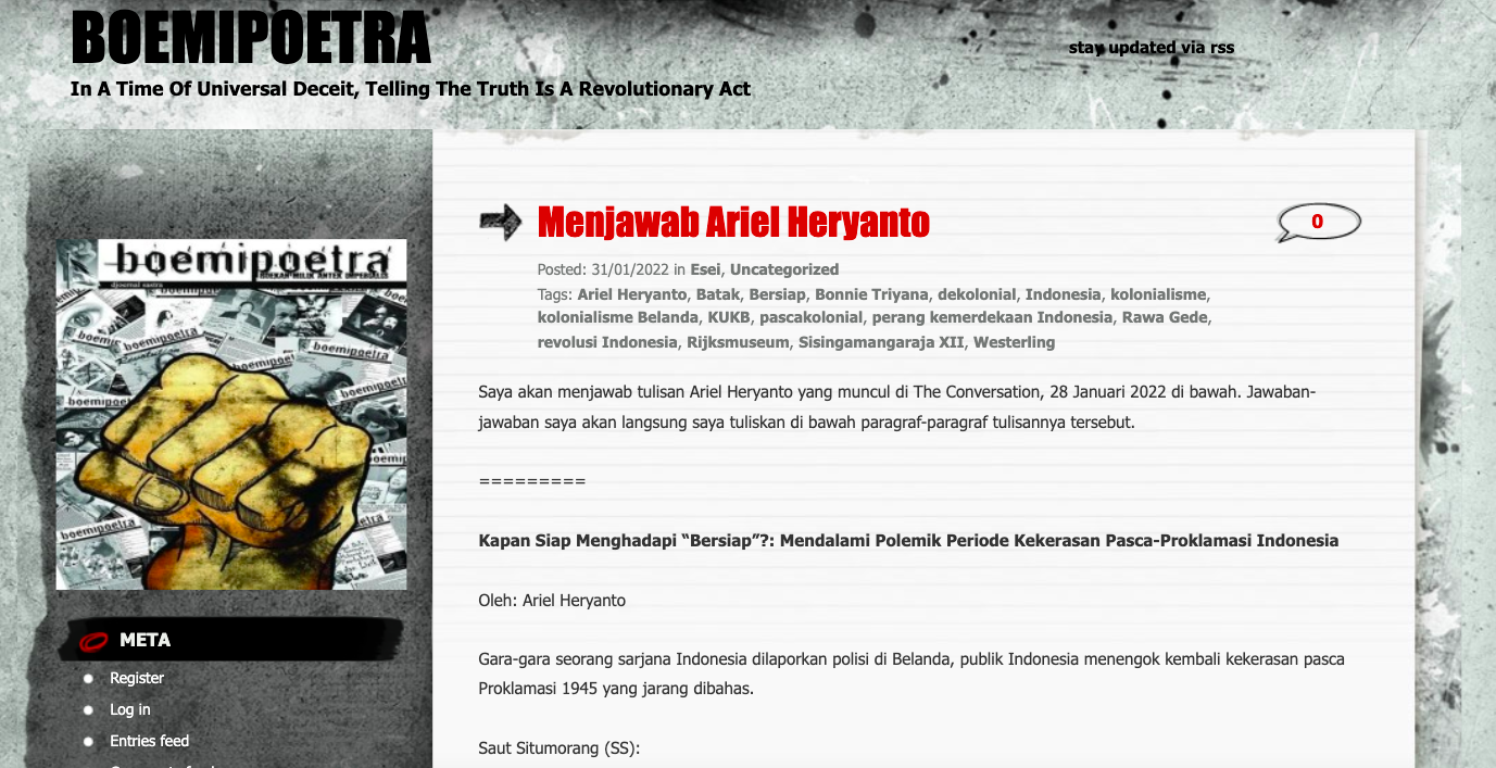 Boemipoetra Saut replies Ariel